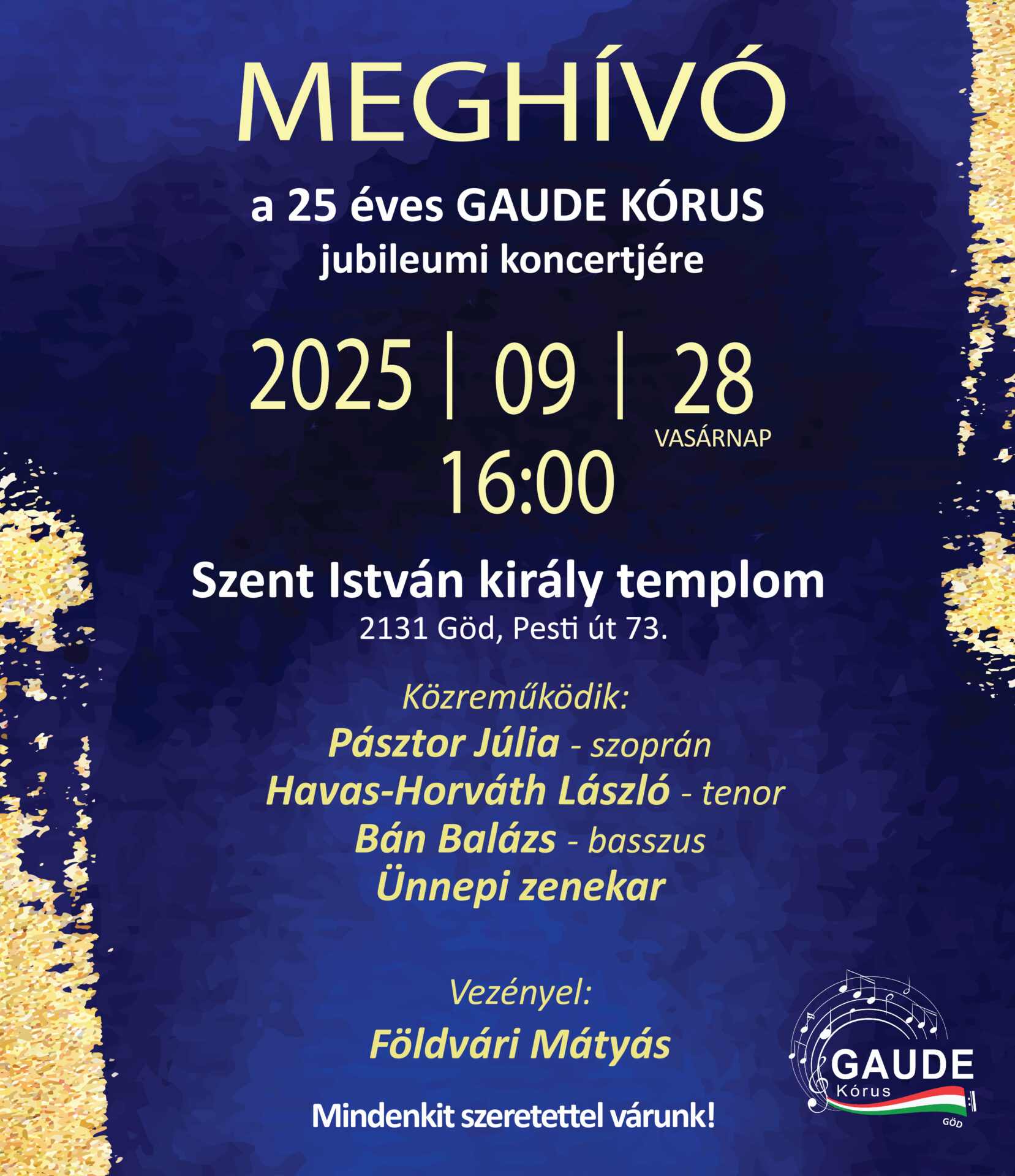 A vasárnapi koncertet Földvári Mátyás vezényli, aki 2018 óta a kórus karnagya. Közreműködik Pásztor Júlia szoprán, Havas-Horváth László tenor és Bán Balázs basszus, valamint egy ünnepi zenekar.