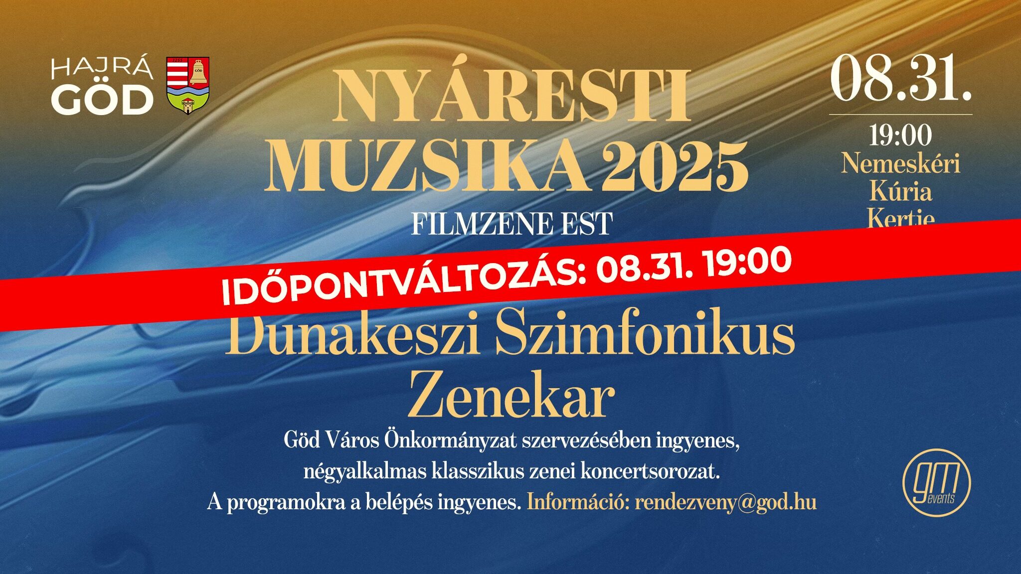Ahogy azt a Hello Gödön már jeleztük, szombatra esőt prognosztizáltak a szakemberek. Ezért a városházán úgy döntöttek, egyeztetve a Dunakeszi Szimfonikus Zenekarral, hogy vasárnap tartják a Nyáresti Muzsika koncertsorozat utolsó állomását.