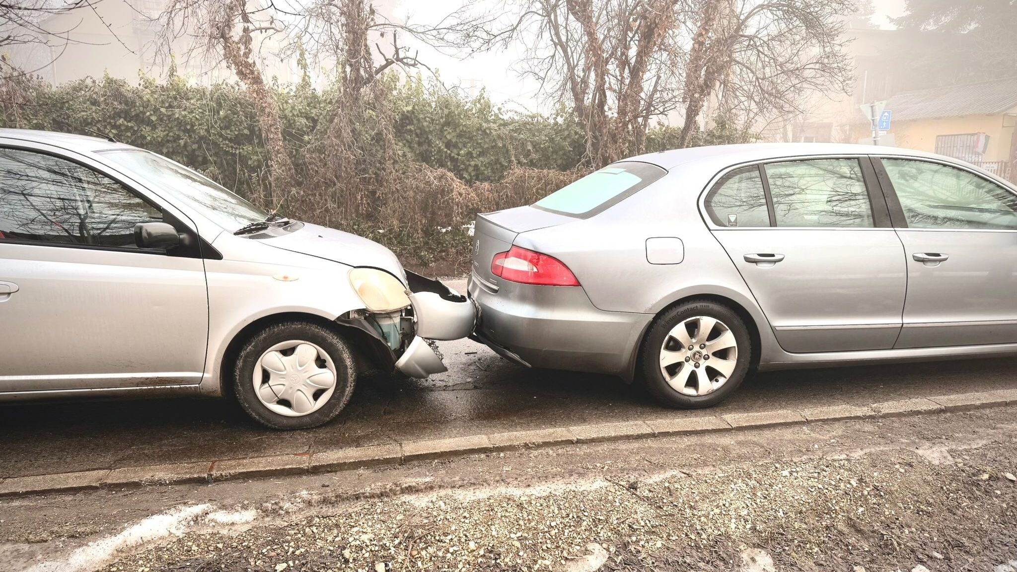 Télies útviszonyokra ébredhettünk Gödön, a szitáló ködös, párás idő és a talajmenti fagy jégpályává változtatta az utakat és a járdákat egyaránt. Talán ezek a körülmények lephették meg reggel fél nyolckor a Toyota Yaris sofőrjét is, aki vélhetően rosszul választotta meg a sebességét a csúszós úton, a korlátozott látási viszonyok között, ezért csapódhatott bele az előtte haladó kocsiba.