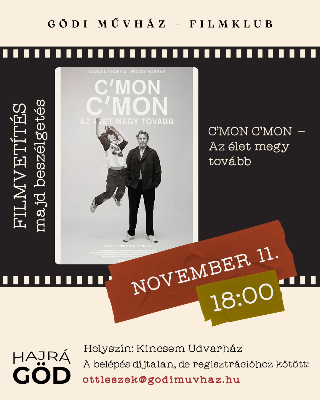 A C’mon C’mon egy érzelmes és elgondolkodtató dráma, amely egy magányos rádiós újságíró, Johnny (Joaquin Phoenix) és unokaöccse, Jesse (Woody Norman) váratlanul szoros kapcsolatának kibontakozását mutatja be. Johnny egy országjáró projekt keretében amerikai gyermekekkel készít interjúkat a jövőről és az élet nagy kérdéseiről, miközben ideiglenesen ő gondoskodik a kisfiúról. A film rendkívül érzékenyen és hitelesen ábrázolja a felnőtté válás, a felelősségvállalás, valamint a szülő-gyermek dinamika nehézségeit és szépségeit.