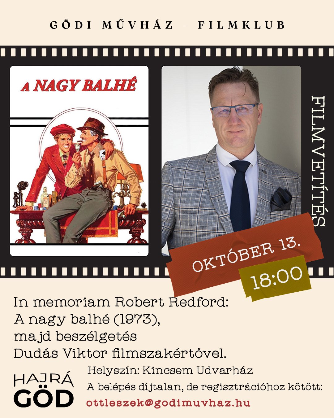 A közös filmnézést követően a filmklub vendége Dudás Viktor filmszakértő lesz, akivel együtt idézik meg Robert Redford színészi és rendezői munkásságát. Dudás Viktor a kortárs magyar filmkritika és filmszakértés elismert alakja. Számos médiumban publikál elemzéseket, valamint rendszeres előadója filmkluboknak és szakmai eseményeknek. Szakértelmével hozzájárul a filmek mélyebb értelmezéséhez és a közönséggel való párbeszéd elindításához.