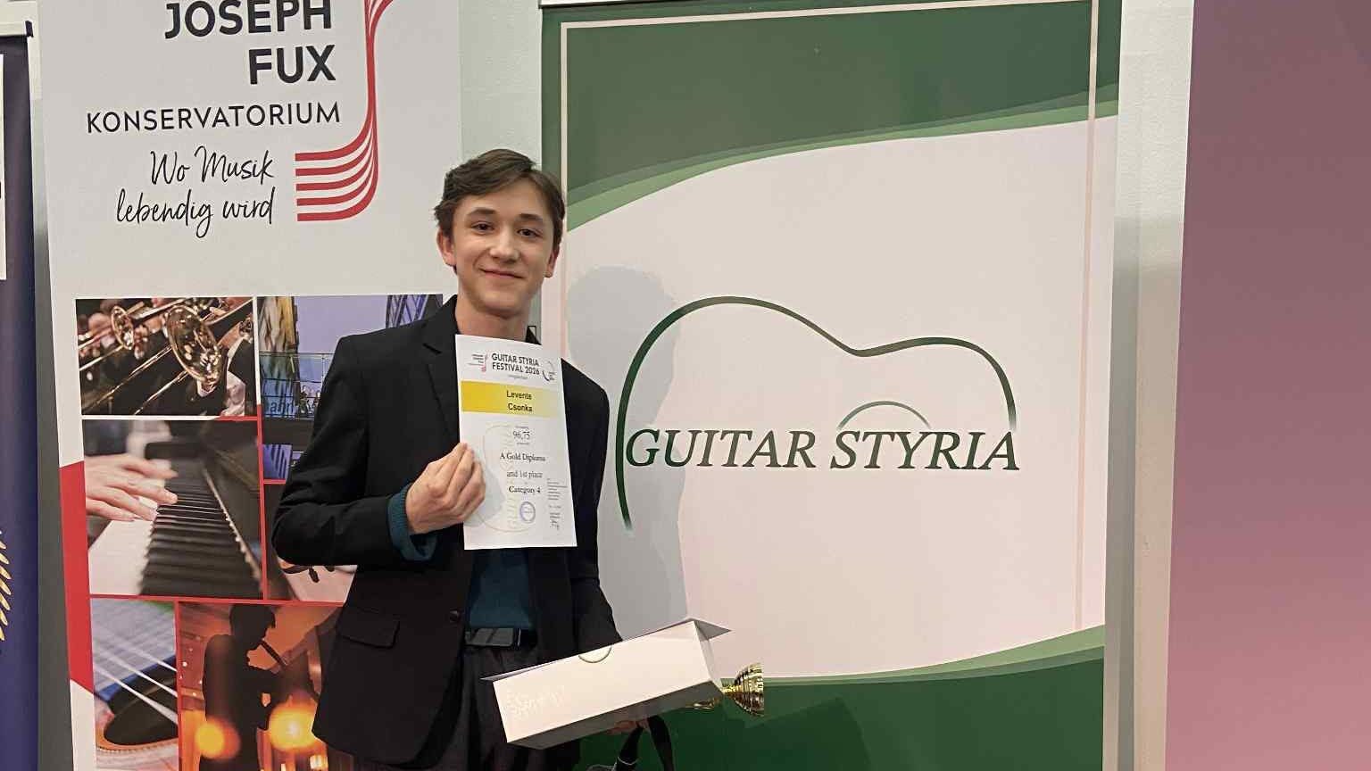 A Guitar Styria Festival 2026 nemzetközi gitárversenyt Grazban, Ausztriában rendezték meg, ahol az iskolát Csonka Levente képviselte. Nagyszerű játékát a nemzetközileg elismert szakmai zsűri I. helyezéssel díjazta.
